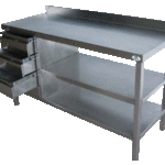 • Mostradores, mesas específicas de la sección, fregaderos, lavamanos, almacenamiento de hielo, armarios, maquinaria, material auxiliar, carros específicos de sección, protecciones, papeleras, eliminadores de insectos.